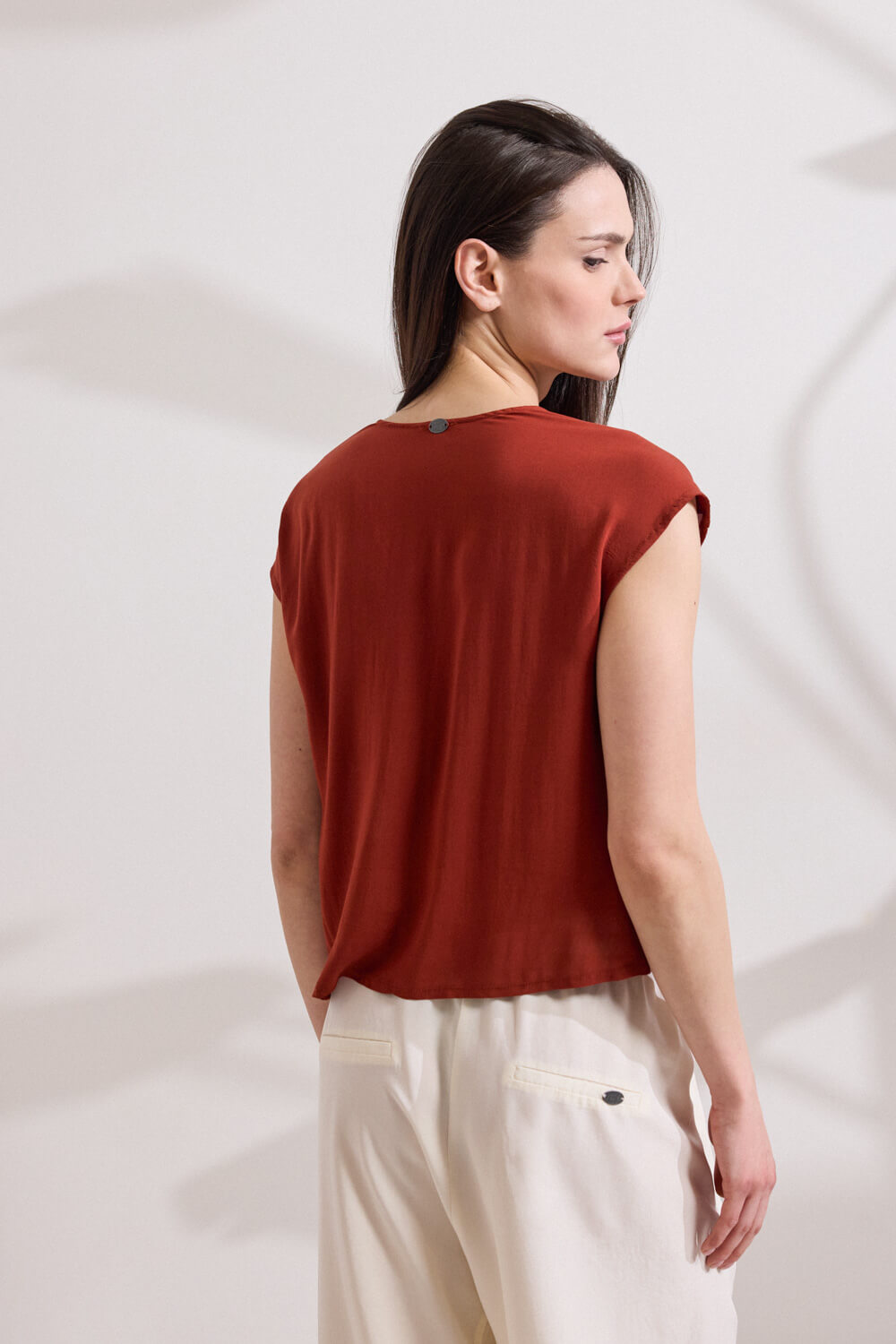Τουνίκ από 100% viscose με V λαιμόκοψη και κοντά μανίκια, διαμορφωμένα με ελαφριά σούρα που προσθέτει διακριτική λεπτομέρεια. Τα ανοίγματα στα πλάγια και η άνετη γραμμή χαρίζουν ανάλαφρη σιλουέτα, διατηρώντας μίνιμαλ και ευέλικτο χαρακτήρα. “Αυτό το προϊόν έχει φτιαχτεί με αγάπη και σεβασμό στο περιβάλλον χρησιμοποιώντας φυσικές ίνες.