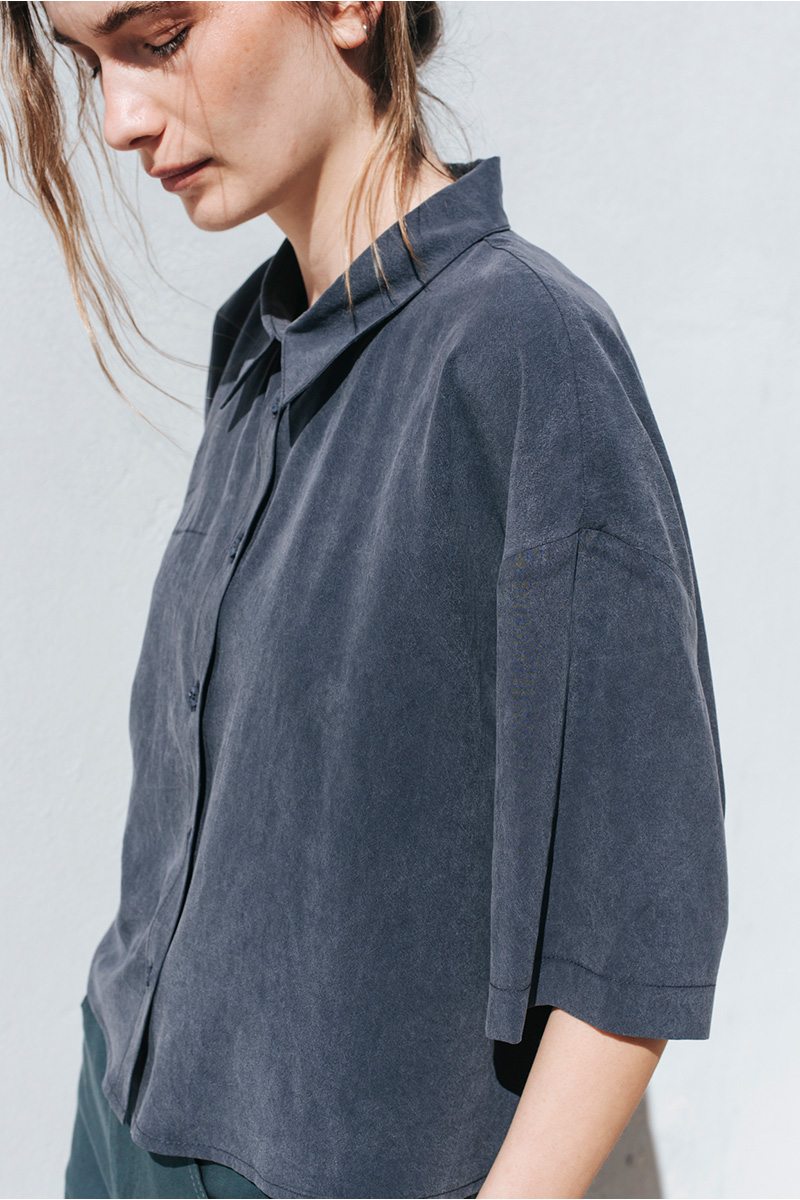 Πουκάμισο κοντό με γιακά και κλείσιμο μπροστά με κουμπιά.