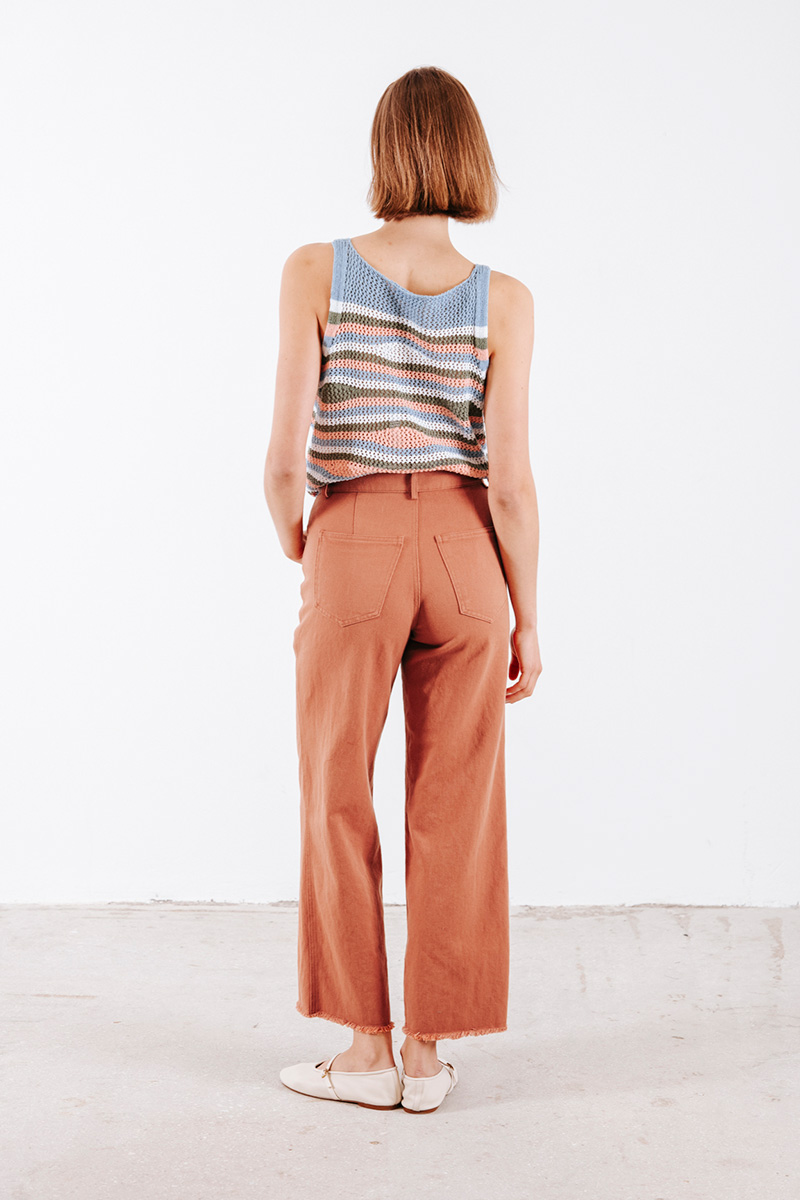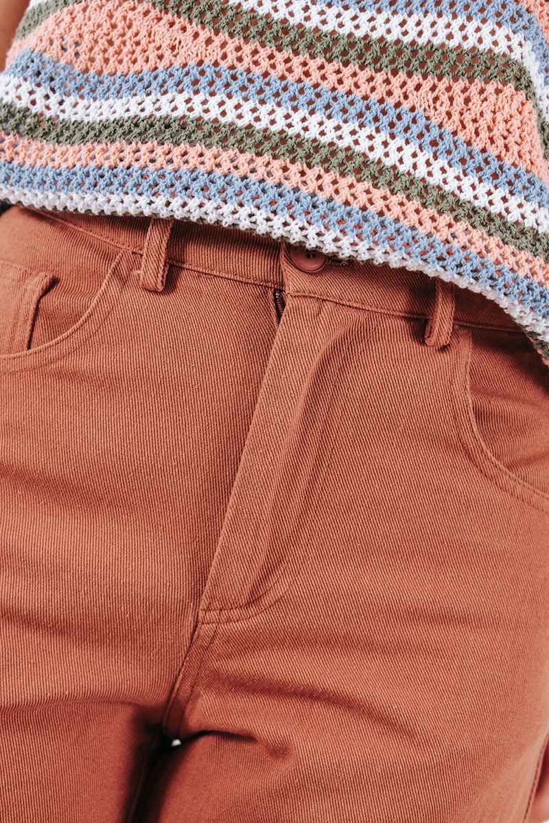 Βαμβακερό παντελόνι πεντάτσεπο, κλείσιμο μπροστά με φερμουάρ και κουμπί.